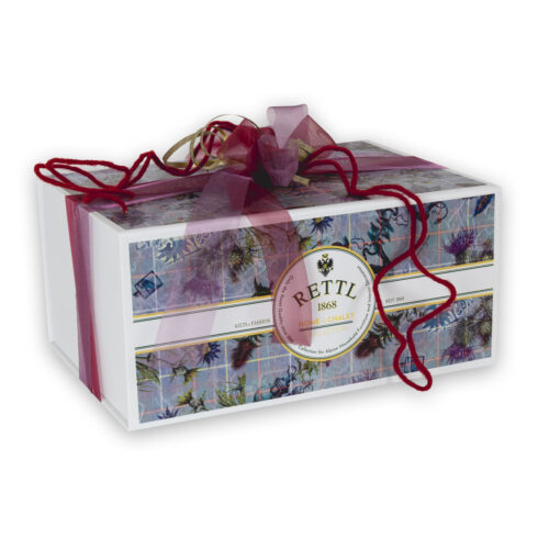 Alle Artikel werden stilvoll in einer Magnetbox mit Zirbenflocken verpackt.