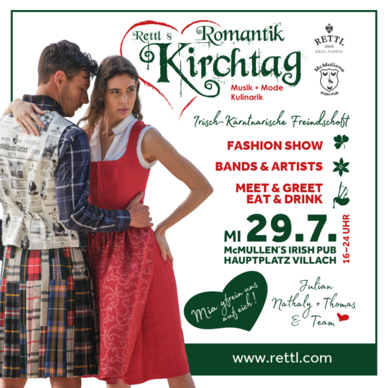 Anlässlich des Villacher Kirchtags treffen wir uns – wie gewohnt – mitten im bunten Treiben, in unserer kleinen, feinen grünen Oase im romantischen Innenhof des McMullens Irish Pubs, um die kärntnerisch-irischer Freundschaft gebührend zu feiern. Auch dieses Jahr haben wir wieder ein feines, leicht schräges Showprogramm für euch zusammengestellt – lasst euch überraschen!
